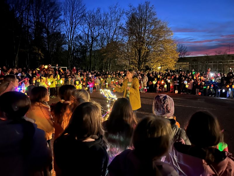 Ein Lied darf dabei natürlich nie fehlen: „Lichterkinder“. Es gehört inzwischen fast schon traditionell zu unserem Martinsfest. Wenn Chor, Kinder, Eltern und Gäste dieses Lied gemeinsam singen, entsteht ein ganz besonderer Moment, der alle verbindet und das Leuchten der Laternen noch ein bisschen heller wirken lässt.